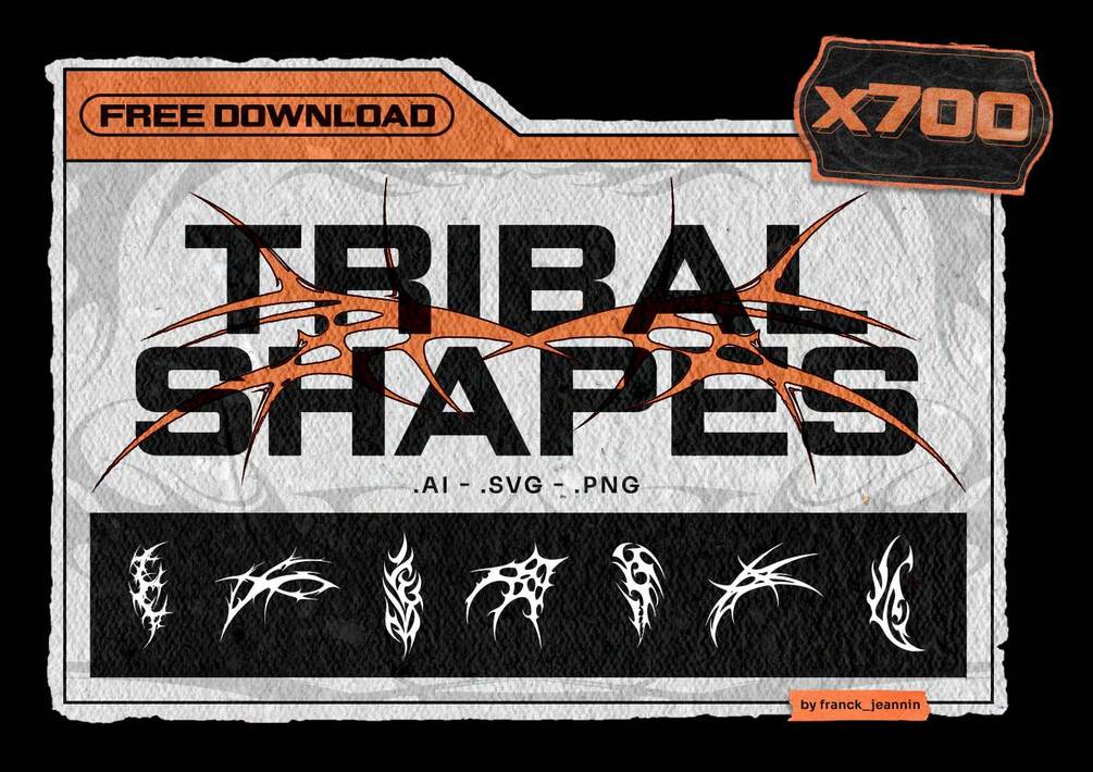 Join me online ;)A unique set of 700 tribal shapes available in .SVG, .AI and .PNG formats. Perfect for logos, posters, textiles, tattoos, digital content, and more.