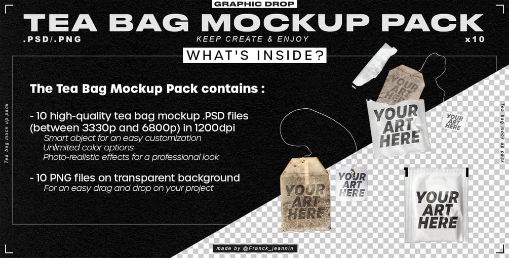 Join me online ;)10 high-quality tea bag mockup .PSD and .PNG file