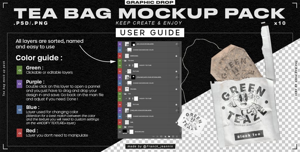 Whether you're a tea manufacturer or a designer looking to impress your clients, these tea bag mockup .psd files are the way to go. They're easy to use and give you the freedom to experiment with different colors, designs, and branding options.